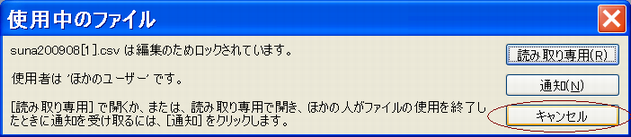 | ■再読込方法 仮に、ファイルの2重読込のエラーを起こさせ、元の画面に戻ることで、エクスプローラに強制的に、最新ファイルを読み込ませます。 手順は以下の通りです。 |